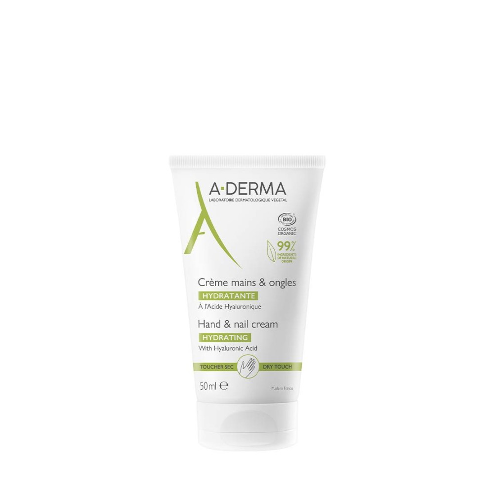 The HANDS AND NAILS dermatological cream and with biological certification A-DERMA IS INDISPENSABLE for comfortable hands and strong nails every day. It nourishes, soothes and repairs weakened hands due to external aggressions (temperature changes, repetitive washing, frequent use of hydroalcoholic gel, etc.) and moisturizes from the first application thanks to the combined use of Rhealbaâ® Oat Sap and Hyaluronic Acid with its strong moisturizing power. Its enveloping and non-sticky texture penetrates quickly and leaves a fresh and light scent on the skin. Composed of 99% ingredients of natural origin, strictly selected for their effectiveness.