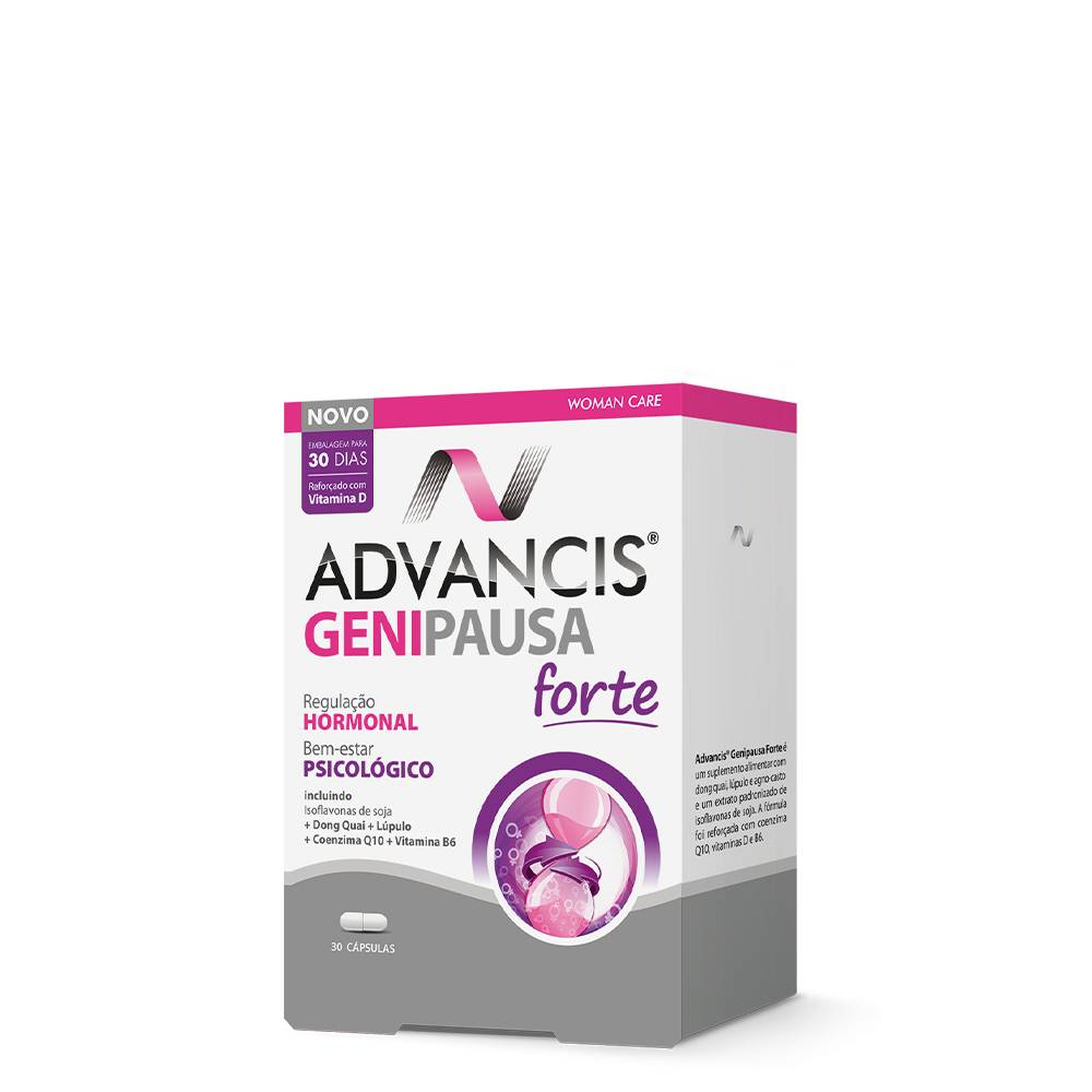 Advancis® Genipausa Forte is a food supplement specially formulated to help in the hormonal balance and psychological well-being of the woman. Its composition includes plants such as dong quai, lãpulo, agno-chaste and a standardized extract of soy isoflavones. The formula was reinforced with coenzyme Q10, vitamins D and B6.