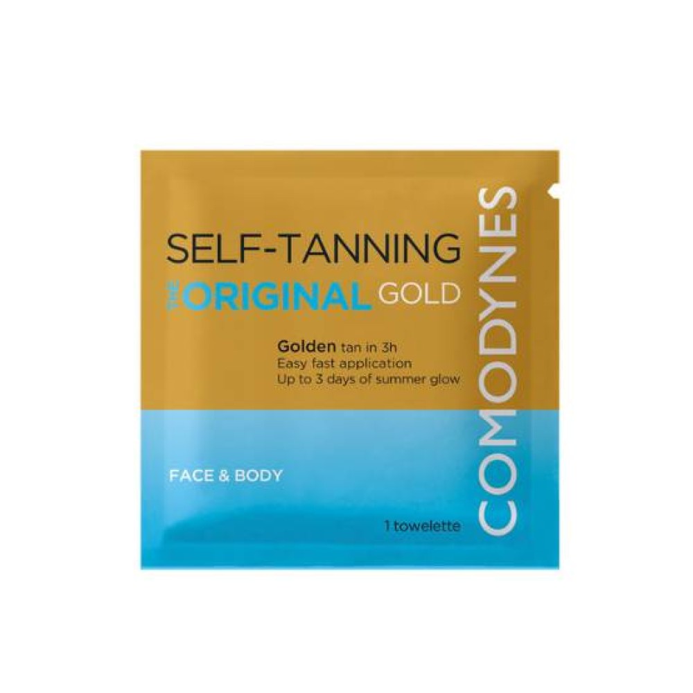Self-tanning wipe for all skin types. Natural color. Extra soft wipe of 100% natural fibers. Tanned skin after 3 h of application. With moisturizing actives and perfume that minimizes the odor of DHA (self-tanning active of natural origin).