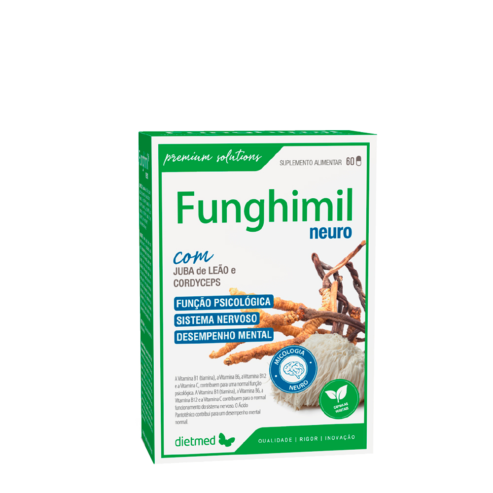 Funghimil Neuro is an advanced supplement that supports mental health and nervous system function. Formulated with Vitamins B1, B6, B12 and Vitamin C, it promotes a balanced psychological function and a healthy nervous system. In addition, Vitamin C and Zinc provide antioxidant protection, fighting cell damage. Pantothenic Acid contributes to normal mental performance, while Zinc supports cognitive function, helping to improve concentration and memory. Ideal for anyone looking to improve mental well-being and cognitive capacity.
