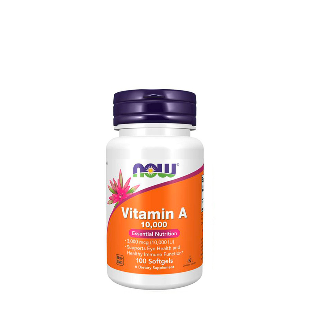 Now® Vitamin A 10000 IU is a food supplement that provides Vitamin A from retinol palmitate, liver oil from fish such as cod, saithe and haddock and has been shown to benefit eye health and skin problems (e.g. acne, psoriasis). It influences the growth and repair process of the cells that make up the eyes, mucous membranes, skin, tooth enamel and scalp. At an ocular level, it protects the cornea (the part of the eye that transmits and concentrates the light that enters the eye) and acts in the production of visual purple (rhodopsin), which is necessary for night vision. Adequate levels of vitamin A in the body prevent the onset of diseases such as corneal ulceration, eyelid swelling, dry eye (decreased tear production), age-related macular degeneration and, in extreme cases, blindness.