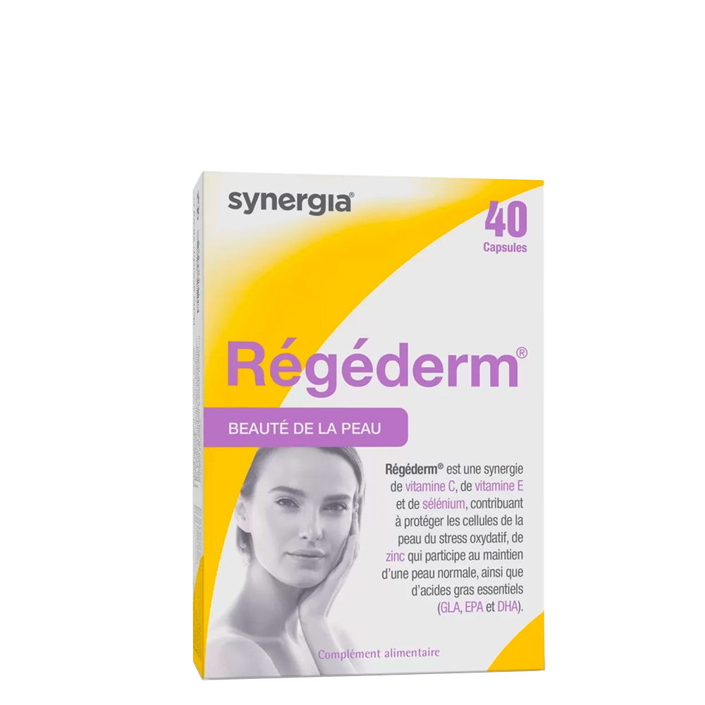 Régéderm is a food supplement that nourishes the skin from within. Régéderm is a synergy of Vitamin C, Vitamin E and Selenium, contributing to protect the skin cells against oxidative stress, Zinc which helps to maintain normal skin, as well as essential fatty acids (GLA, EPA and DHA).